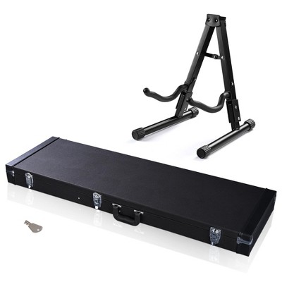 Kit includes an acoustic guitar hard case and a folding guitar floor stand