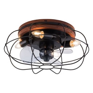 This industrial-style ceiling fan light expertly combines powerful illumination with efficient air circulation for year-round comfort. Constructed from high-class iron and ABS with a durable water transfer finish, it features a unique caged design that