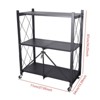 Carbon steel three-layer storage rack, corrosion-resistant and durable, with a large capacity and strong load-bearing capacity of 33.07 pounds per layer. Equipped with silent universal wheels and brakes, easy to assemble and fold, black minimalist design, suitable for various occasions, ideal home gift.