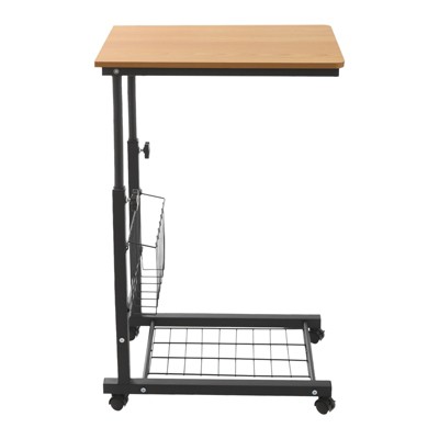 This height-adjustable side table is the perfect companion for working from bed or any cozy spot. Crafted from durable carbon steel and density board, it features a sleek teak finish and smooth, rounded corners for safety. The two-tier design offers ample storage for books and essentials, while the adjustable height (22-30") accommodates various uses. With four locking wheels, it's easy to move and secure. Assembly is simple, and the modern design adds a touch of sophistication to any room.