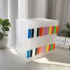Upgrade your workspace organization with this set of 12 clear file boxes. Made from durable PP plastic, they protect your documents while the transparent design lets you easily see contents at a glance, boosting efficiency. Each box features double buckles for secure closure and anti-slip corners, and the set includes 12 different colored lids for quick identification. Perfect for storing papers, photos, craft supplies, and more, these lightweight boxes stack easily to save space. Ideal for home offices, study rooms, or any space needing neat storage.