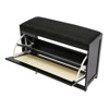 This shoe storage stool is the perfect entryway solution, combining practicality and comfort. Made from durable bamboo and composite board with a black finish, it features a two-tier storage space for organizing your shoes. The removable cushion with built-in sponge provides a comfortable seat for changing shoes, while the flip door design, complete with air holes, keeps shoes ventilated and protected. Sturdy enough to support up to 220 lbs, it functions as both a stylish stool and a functional storage cabinet, helping you maintain a tidy and elegant entryway.