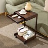YIYIBYUS Solid Wood C-Shaped Side Table with Drawer & Lockable Wheels
