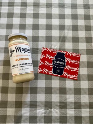 [This review was collected as part of a promotion.] This sauce is amazing! Cheesy, creamy, and kid approved. Serve on top of your favorite noodles with broccoli and chicken for a quick and easy meal. Yo Mama's Alfredo Sauce hit the spot!