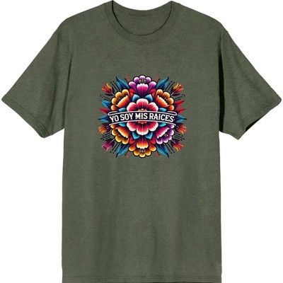 Yo Soy Mis Raices Mosaic Woman Adult Green Crew Neck Short Sleeve Tee-3XL
