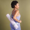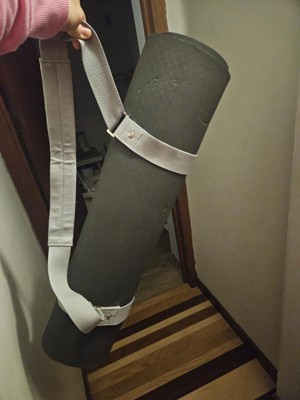 The All In Motion Yoga Mat Sling is a simple and lightweight yet very effective way to carry a yoga mat. There is the correct amount of total strap with the 2 adjustable ends to be able to attach it to any size yoga mat. The design of the tension in the end loops to hold the mat when you have it slung on your shoulder also allows the strap to be quickly detached when you take it off your shoulder. Nothing locks into place to slow you down when you down.
