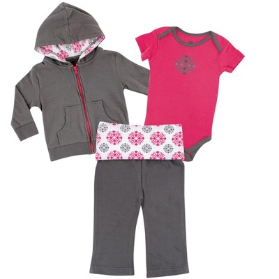 • Set Includes hoodie or jacket, Bodysuit or tee top and Pant
