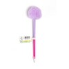 The purple pom pom pen writes silky smooth! A ballpoint pen and decorative desk accessory all in one! It features a 1.0mm point for effortless writing and includes a plastic end cap to make the ink last