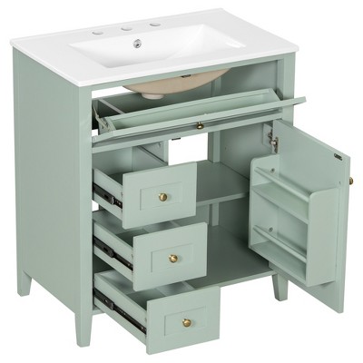 YOOCOZZ 24"Bathroom Vanity with Ceramic Sink, 1 Soft Close Door, 2 Soft Close Drawers, and Double Storage Racks
