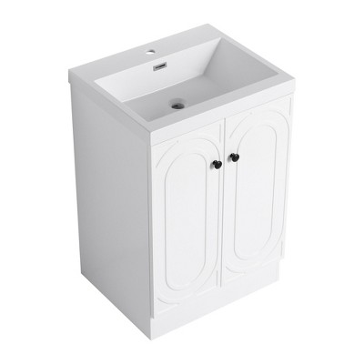 This bathroom vanity provides a harmonious blend of robust construction and elegant design, ideal for creating a functional and stylish bathroom space. Crafted from durable rubberwood and high-quality MDF panels, it ensures long-lasting stability and a refined aesthetic. The integrated smooth ceramic basin offers a glossy, easy-to-clean surface that combines practicality with a sleek look. Intelligent storage solutions include an adjustable interior shelf within the cabinet for customizable organization of bottles and towels, plus a convenient rack mounted inside the cabinet door for smaller essentials. All drawers operate smoothly on reliable metal slides for effortless daily access. Finished in a crisp white paint and accented with timeless zinc alloy handles, the vanity presents a clean, modern appearance. Its stable freestanding design allows for versatile placement in any bathroom layout, and the straightforward assembly process, complete with clear instructions, ensures a quick and hassle-free setup.