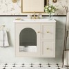 This wall-mounted bathroom vanity is a perfect blend of style and practicality, featuring an easy wall-mount design that saves valuable floor space while creating a sleek, modern aesthetic in your bathroom. It offers smart, spacious storage to maximize organization: a glass-door cabinet for elegant display and two deep drawers to keep toiletries neatly stowed, ensuring your bathroom stays clutter-free. The premium ceramic sink delivers a luxurious feel with a smooth surface that’s effortless to clean, paired with a chrome-finished overflow that adds both style and practicality by preventing water spills.
