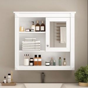 This wall-mounted mirror cabinet is a versatile storage solution that blends functionality and style, perfect for decluttering bathrooms, kitchens, bedrooms, or hallways with its classic design that fits seamlessly into various decor styles. It offers ample organized storage with 4 shelves and doors, ideal for stowing medicine, toiletries, and other essentials, while the removable shelves make cleaning a breeze for long-term convenience. Crafted with high-definition glass, it delivers a clear, bright reflection for grooming or makeup routines, and the high-quality MDF panel with waterproof and moisture-proof spray paint ensures durability in humid environments like bathrooms. Its space-saving wall-mounted design maximizes storage without occupying valuable floor space, making it a great fit over toilets or any empty wall.