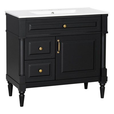 YOOCOZZ 24" Bathroom Vanity with Sink, MDF & Rubberwood Construction, 3 Drawers & Cabinet with Adjustable Shelves
