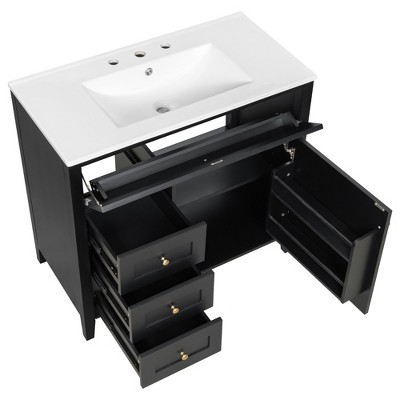 YOOCOZZ 36"Bathroom Vanity with Sink, Single Sink Vanity with 4 Drawers, 2 Doors & Adjustable Shelf