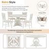 This 5-piece retro dining set includes an extendable table with a 16-inch leaf and four upholstered chairs, perfect for adding a touch of vintage charm to your dining room or kitchen. The set features symmetrical hollowed-out carving patterns on the table legs and chair backrests, available in antique white and walnut finishes. The round table can be adjusted from 42 inches to 58 inches, seating up to six people. Crafted from high-quality materials, this set ensures durability and comfort, with detailed instructions for easy assembly.
