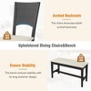 - The chairs showcase stylish arched backrests, while the bench ensures stability with its long stretcher design.