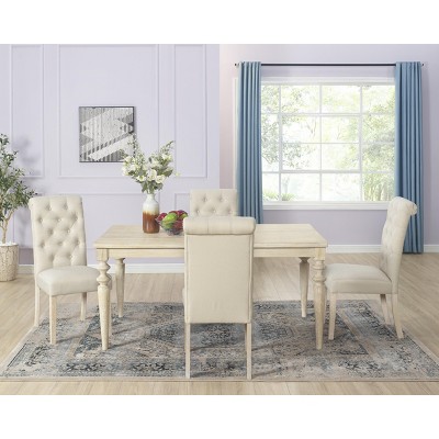 - Comfortable Seating: The chairs and bench are equipped with foam-padded cushions and beige fabric for superior comfort.