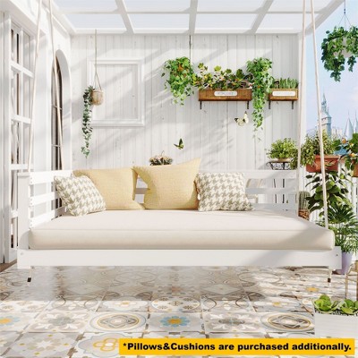 YOOCOZZ Acacia Wood Patio Twin Size Swing Bed Seating Group with Hemp Ropes