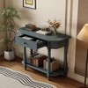 This narrow console table with a curved corner offers a perfect blend of vintage style and practical functionality. Crafted with a solid pinewood frame and legs, it features a smooth finish and elegant design elements like curved corners and intricately turned legs. The table includes a top drawer and an open shelf for convenient storage, making it ideal for entryways, hallways, and living rooms. Available in five beautiful finishes, this console table is both stylish and durable.