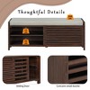 This shoe bench with storage offers a perfect blend of classic charm and practical functionality. With its elegant shutter-style slats and high-quality materials, it adds a touch of sophistication to any living room or entryway. The bench provides ample storage space beneath a comfortable seat, with a shelf on one side and an open area on the other. Thoughtful details like a soft cushion and sliding door make it both stylish and functional. Easy to assemble with detailed instructions, this bench is a great addition to any home.