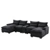 YOOCOZZ Double-Chaise Chenille Sectional Sofa with Double-Layer Cushion, Storage Console, Cup Holders, USB Ports