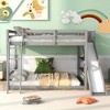 This full-size bunk bed is an ideal solution for homes needing extra sleeping space without sacrificing style or functionality. Its space-saving bunk design fits perfectly in smaller rooms, while the built-in ladder ensures safe and easy access to the top bunk. A fun slide adds an element of play, making bedtime enjoyable for kids. Convenient shelves beneath the slide offer extra storage for books, toys, or everyday essentials, helping to keep the room organized. Crafted with a simple and modern aesthetic, this bunk bed seamlessly complements any décor, making it a smart and stylish choice for maximizing both comfort and space in your home.