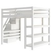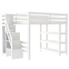 YOOCOZZ Loft Bed with Shelves, Storage Staircase, Small Wardrobe and White LED Light - White