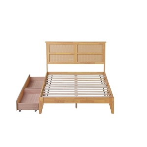 YOOCOZZ Full Size Platform Bed with Rattan Headboard and Two Storage Drawers
