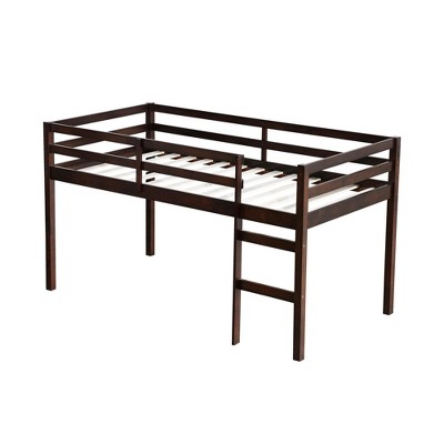 YOOCOZZ Full Size Rubber Wood Loft Bed with Ladder-Espresso