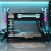 This dual-purpose bunk bed is crafted to inspire and support a dedicated gaming lifestyle, merging thoughtful design with functional utility. Its structure features clean lines and a robust build, delivering an e-sports inspired aesthetic that creates an immersive atmosphere for enthusiasts. The bed’s core innovation lies in its two integrated workstations, with a spacious built-in computer desk seamlessly incorporated on each side, enabling two users to game, study, or work simultaneously in a highly space-efficient layout. To ensure a tidy and organized environment, each desk area is equipped with a versatile pegboard storage system, perfect for hanging headsets, controllers, cables, and other essential accessories, keeping them off the desk surface yet instantly accessible. This smart design consolidates sleeping, working, and gaming into a single, cohesive unit, offering unparalleled convenience and stability for maintaining a streamlined and efficient personal setup. The product is designed for home assembly, arriving with all necessary components and clear instructions for straightforward setup.