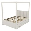 YOOCOZZ Modern Wood Upholstered Platform Bed with Trundle, Storage Drawers and Canopy - Beige