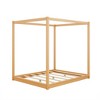 This modern canopy bed blends style, comfort, and practicality! Its canopy design with top rails lets you add decorative curtains for a personalized look, making it the bedroom’s centerpiece. Made of pine wood and MDF, it’s sturdy, with extra support legs for stability.Slats don’t touch the ground—air circulation keeps the mattress fresh and under-bed cool. No box spring is needed, and assembly takes under an hour. Pair it with your favorite mattress and bedding to create a distinct, cozy space. It meets all your bed needs—ideal for anyone wanting style and functionality!