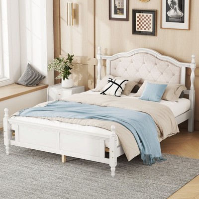 YOOCOZZ Queen Size Pine Wood Bed with Upholstered Headboard,Panel Footboard and Four Support Feet