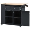 YOOCOZZ Rolling Kitchen Island with Solid Wood Drop Leaf, Power Outlet, Wine Glass Holders and Flexible Desktop Hole