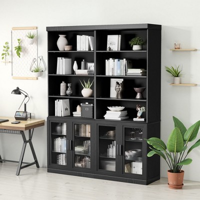 The elegantly designed 4-door kitchen pantry includes two upper doors, each opening to reveal 4 door shelves.