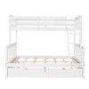 Designed to maximize space, this twin-over-full bunk bed offers an ideal solution for spontaneous sleepovers without occupying excessive room. It includes a pair of convenient under-bed drawers, providing discreet storage for clothing, toys, or bedtime essentials. The versatile configuration features a twin-size upper bunk and a full-size lower bunk, which can also be separated into two individual beds to adapt to your spatial needs. Crafted from high-quality solid pine wood with a robust frame and legs, the bed ensures lasting durability and reliable support. Safety is emphasized through a full-length guardrail on the upper bunk, a headboard and footboard on the lower bunk, and an added handrail for extra security. The slat kit is included, eliminating the need for a box spring. While some assembly is required—clear instructions and tools are provided—no mattress is included. With its elegant silhouette and versatile design, this bunk bed seamlessly blends into any bedroom decor, offering functionality, safety, and style.