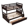 This Twin-Over-Full Bunk Bed is ideal for homes needing extra sleeping space or accommodating sleepover guests, as it takes up minimal space. It features a twin-size upper bunk and a full-size bottom bunk, and can be divided into two individual beds for added convenience, depending on your space organization needs. Under the bottom bed, a pair of drawers offer ample stowaway space for clothes, bedtime stories, toys, or bedding. Crafted from high-quality solid pine wood with solid pine legs and a strong, durable frame, the bed is sturdy and built for long-term stability and durability. For safety, the upper bunk is equipped with full-length guardrails, while the bottom bunk includes both a headboard and footboard. It comes with a slat kit, so box springs are not required, and fits standard mattresses (mattresses not included). Some assembly is required, though clear instructions and tools are provided. With a clean silhouette and elegant hue, this functional and aesthetic bunk bed suits all home decor styles, enhancing and completing the look of any bedroom.