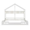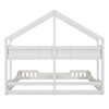 Imagine a single piece of furniture that turns a bedroom into a cozy shared retreat: this twin-size house platform bed does exactly that. Two side-by-side sleep spaces sit beneath playful peaked roofs, creating the feel of a private cabin for each occupant while keeping them safely within the same footprint. Full-perimeter guardrails wrap both beds, so restless sleepers—and relieved parents—can rest easy. Crafted from solid pine and premium MDF, the frame stays whisper-quiet and rock-solid year after year, while built-in side shelves offer hidden storage for storybooks, tablets, or bedtime essentials.