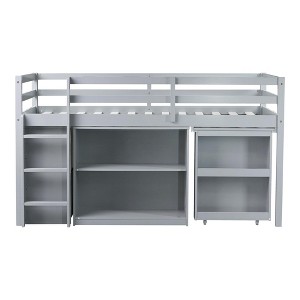 This ingeniously designed rubber wood loft bed revolutionizes small spaces with dual under-bed storage cabinets—featuring one unit with three smooth-glide drawers for toy organization and another with adjustable 2-tier shelves for books—allowing customizable storage layouts to match your child's needs. The pull-out desk on wheels effortlessly unfolds into a study zone with a 2-tier side shelf for essentials like water cups or storybooks, perfect for homework or creative projects. Safety is prioritized with full-length guardrails and an ergonomic ladder, while the premium rubber wood frame and reinforced plywood slats ensure lasting durability. Blending sophisticated design with smart functionality, this loft bed creates a cohesive sanctuary for sleep, study, and play—all while teaching organizational skills through intuitive storage solutions.