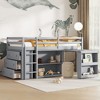 - Configurable Under-Bed Storage: Two versatile cabinets provide substantial storage: one features three smooth-glide drawers for organized toy storage, while the other offers a 2-tier shelf for books.Cabinet positions are interchangeable to optimize space according to preferences.
