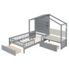 YOOCOZZ Twin Size Wooden Bed with House Design and Upholstered Sofa