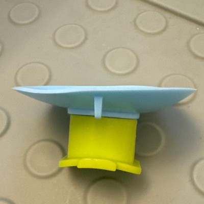 Cute toy but the suction is deformed and won't stick to the tub. I hold it and my daughter pours the water.