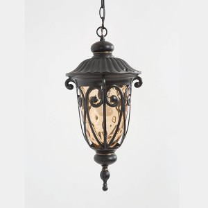 Yosemite Home Decor introduces the Viviana Collection Nine-Inch Incandescent Hanging Exterior Sconce with a Oil-Rubbed Bronze Frame. It comes with a Gold Stone Glass that allows for a soft dispersion of light. This stylish addition to your home will provide form and functionality to your delight. It requires 1 medium based 60 watts incandescent bulb.