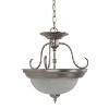 Light up a room with the simple and stylish Yosemite 2-Light Semi-Flush Mount Light in light satin nickel. This ceiling light boasts a unique metal base with a small pendant-style column and three curling accents all finished in satin nickel. The glass, bowl-shaped light shade holds 2 bulbs. Light fixture includes mounting hardware. Bulbs sold separately.