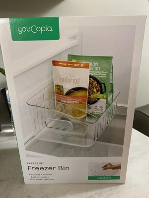 [This review was collected as part of a promotion.] I won’t need to rummage through my lower freezer in my french door refrigerator to find what I’m looking for anymore. The 12” FreezeUp Freezer Bin is a great way to organize several products, like the bags of frozen veggies or fruit for smoothies, for easy access. I like how simple it is to move the dividers around, and the clear bin is well made and easy to clean. I’m going to buy more bins for my fridge items too!