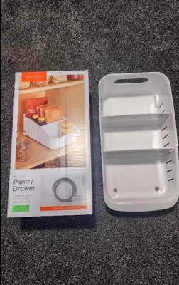 [This review was collected as part of a promotion.] I love this Rollout Pantry Drawer! Its simple, compact design will help any overstuffed pantry become more organized. No more shoving products to the side when looking for items in the back or loose oatmeal packets cluttering the pantry shelves! Simply roll out the drawer! It also comes with 2 dividers for the option to create 3 varying size compartments. This is by far my favorite kitchen organization product.