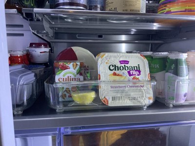 I bought this to replace a soda can tray that I'd been using to organize cheeses on a shallow fridge shelf, and it's such an improvement. The other trays were fine, but kind of heavy and clunky to pull in and out. With the wheels on this bin and the lighter-weight design it's so easy to roll in and out and access everything at a glance. Such a good purchase. Also bought the 4" width and they fit great side by side on the shelf.