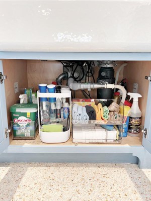 We used this product at one of our client's kitchen to organize her under the sink cabinet. We stored her everyday cleaning products for easy access. Its design is beautiful and versatile.