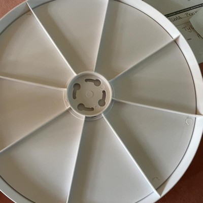 I really liked the idea of an adjustable height turntable. I purchased 3, and put one together. I found the little pegs that are used to attach both pieces to be flimsy. Three of the four pegs broke off. I haven’t tried to assemble the other two.