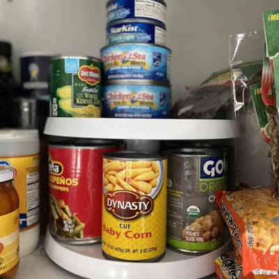 YouCopia Crazy Susan Two Tier Turntable: White, Revolving Rack, Non-Slip Grip, Ball Bearing Glides, Kitchen Storage, Plastic